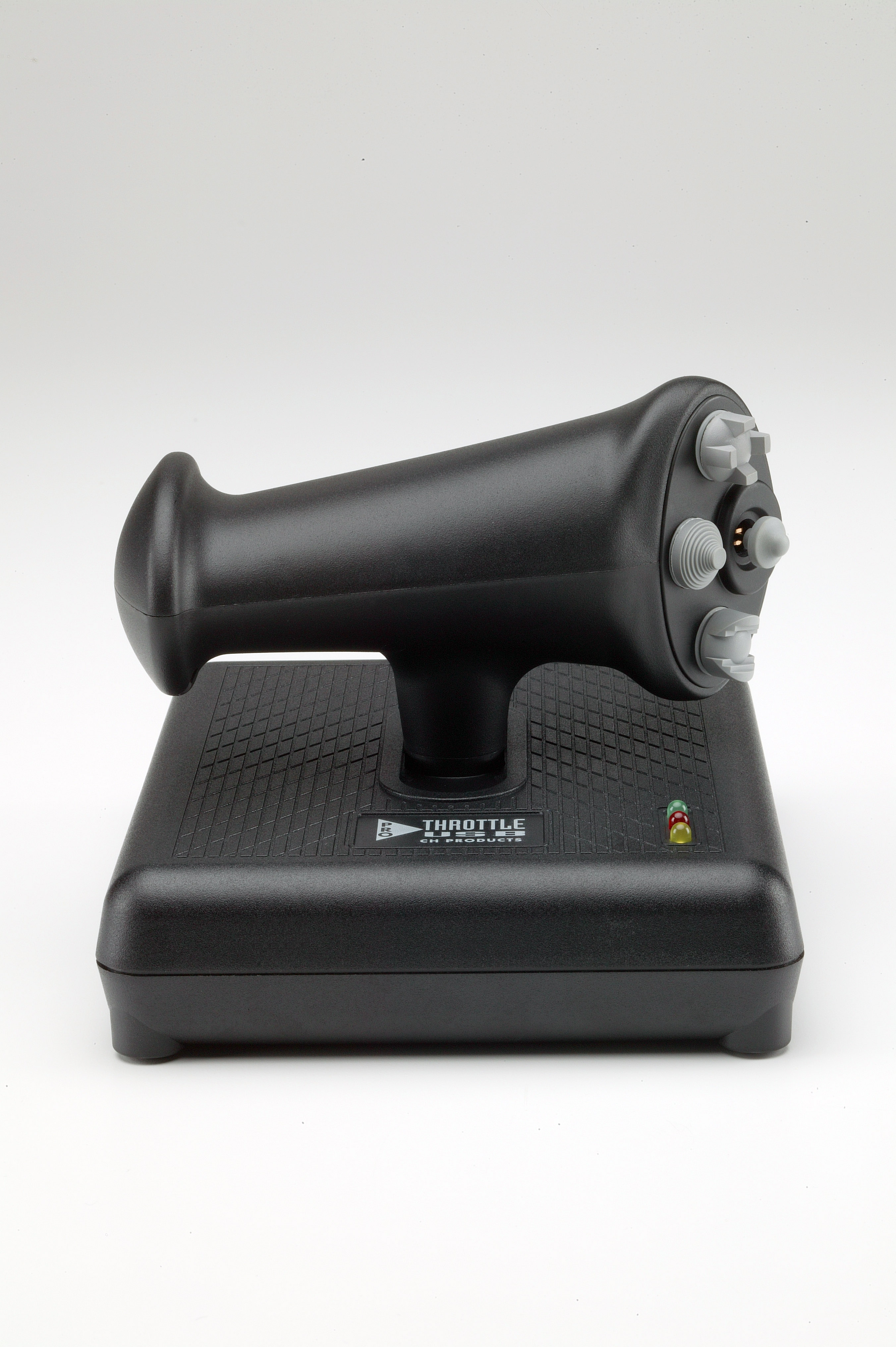 Ergonomic left handed jet styled slide throttle with 3 axes, 4 buttons, three 4-way hat switches and one 8-way hat switch for a total of 112 programmable functions (with Control Manager software) and two axes dedicated to the mini joystick for precision pointing or movement. Three separate programming modes accessed on the fly via mode button on handle and colour LED's to indicate which mode is selected.