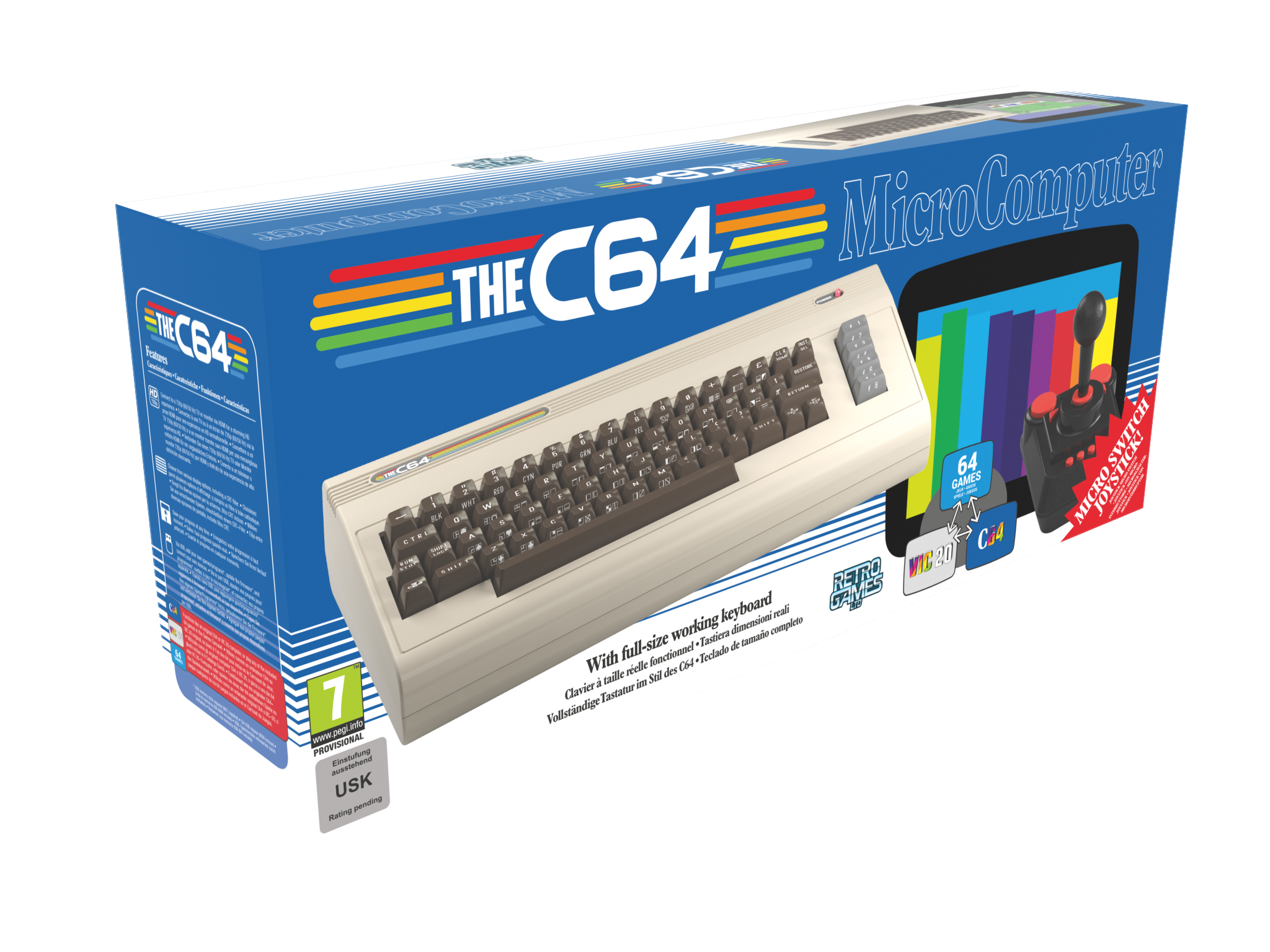 Commodore 64, najbolje prodajani hišni računalnik vseh časov se vrača v prvotni obliki, z delujočo tipkovnico! V notranjosti je vezje, ki v popolnosti simulira prvotni računalnik, s katerim pa ni težav pri povezavi z novodobnimi televizorji in monitorji. Prikaz je zdaj 720p HD! Priložena je prenovljena igralna palica in prednaloženih je veliko klasičnih iger, kot sta Boulder Dash in California Games, pa tudi novejših, kot sta Galencia in Attack of the Mutant Camels. Z USB-ključkom je mogoče zlahka naložiti lastne igre, zaradi popolne tipkovnice pa programirati v BASIC-u in nato narejeno shraniti na ključek. Tu sta podpora 50 in 60 hercem, za prave retro navdušence, ki morebiti že potrebujejo kisik, planice in infuzijo :), pa je omogočen še način VIC-20.