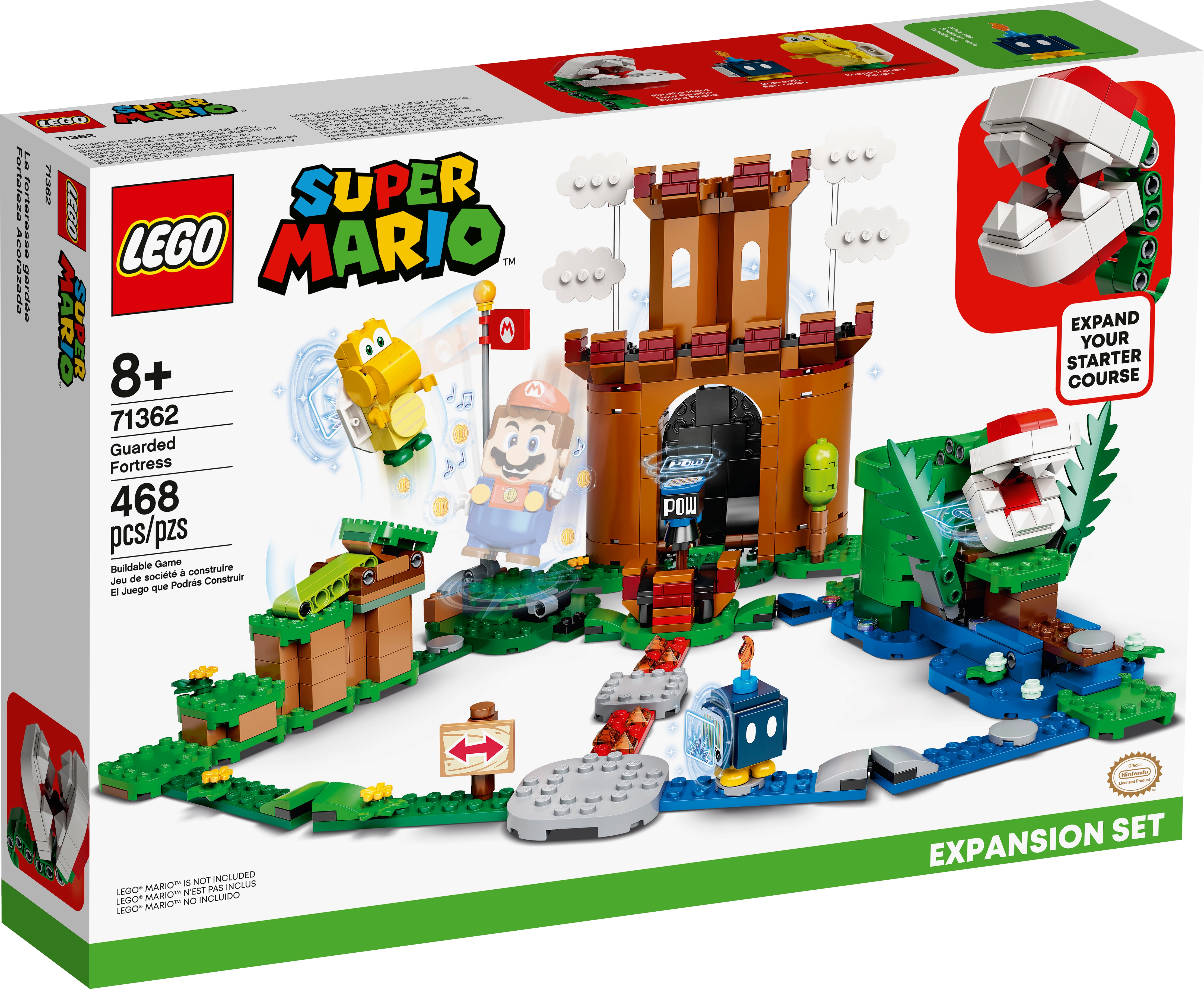 Razširite svoj LEGO® Super Mario™ začetni komplet z novimi vznemirljivimi dogodivščinami! Tecite čez travo in skočite na katapult, da premagate Koopino četo, nato pa skočite na ploščad in dvignite zastavo. Ali pa skočite čez lavo in premagajte Bob-ombju. Če izberete vodno pot, vas čaka dvoboj z rastlino piranha. Vse 3 poti vodijo do akcijske kocke, ki odpre vrata trdnjave, kjer lahko dobite kovance. Marijina figurica ni vključena v paket.