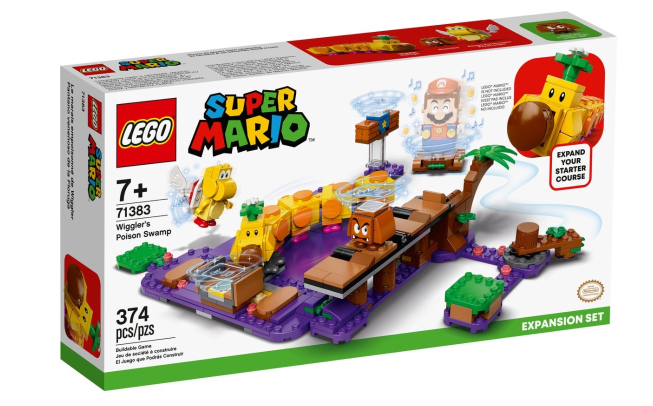 - Mladi gradbeniki lahko ustvarijo najrazličnejše izzive v zidani strupeni soda džungli, ki jo lahko dodajo na svoj začetni tečaj LEGO® Super Mario ™ s tem Wigglerjevim kompletom za razširitev strupenega močvirja (71383).