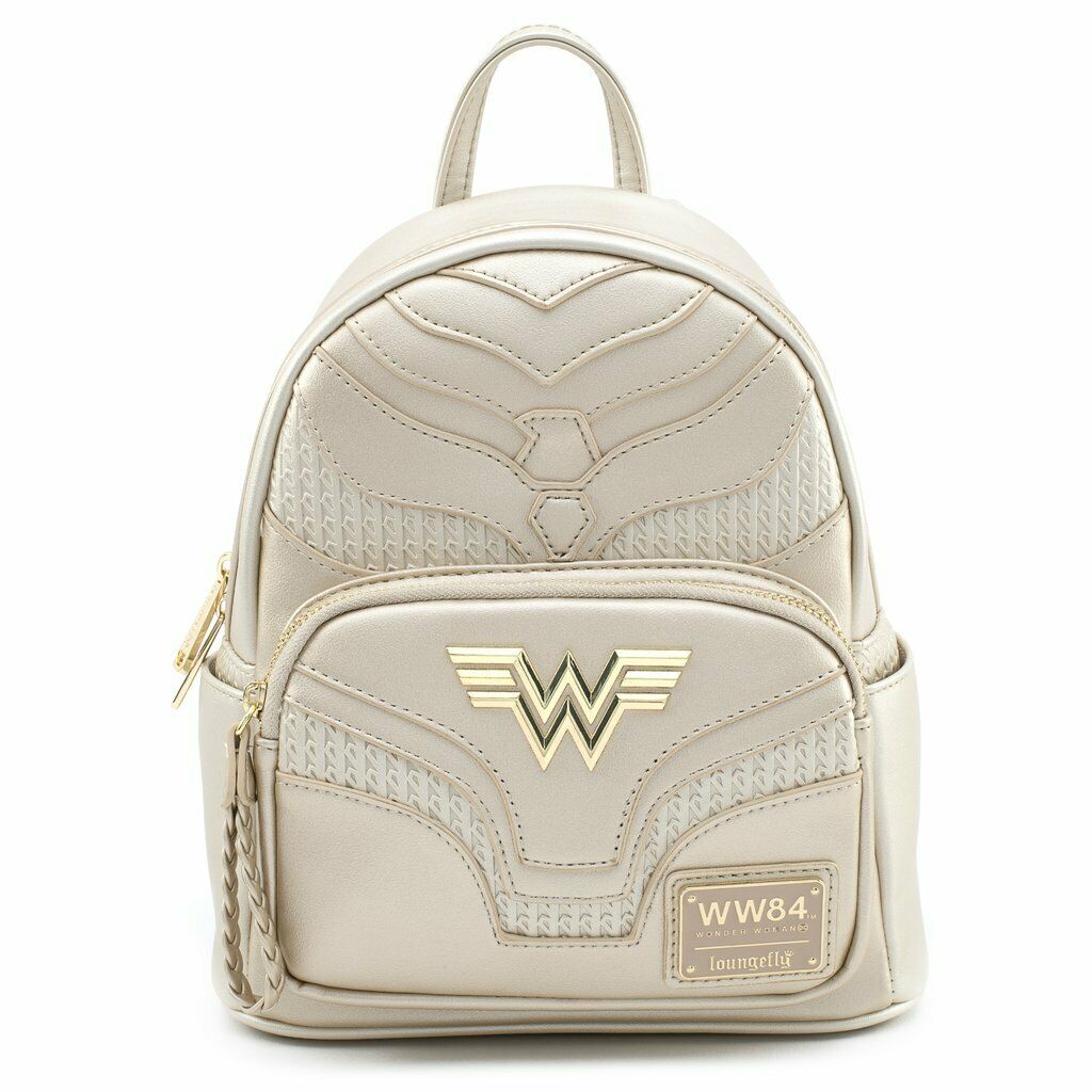 Ta Wonder Woman nahrbtnik je v bistvu sam po sebi superjunak. Ta mini nahrbtnik iz umetnega usnja vključuje vtisnjene, aplicirane, 3D oblikovane zakovice in kovinske plošče. Oglejte si neverjetna vtisnjena krila na zadnji strani torbe.