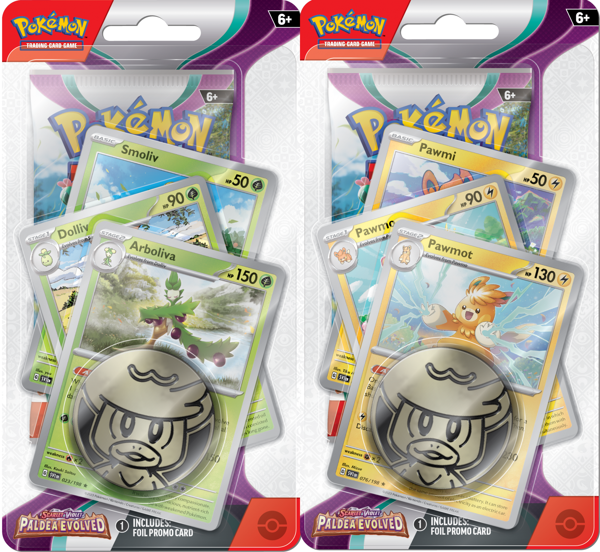 Get in on the latest Pokémon TCG action with an awesome booster pack, three promo cards featuring a full Evolution chain of either the Electric-Type Pawmi, or the Grass-Type Smoliv, as well as a cool metallic coin and a code card for the Pokémon TCG Online!